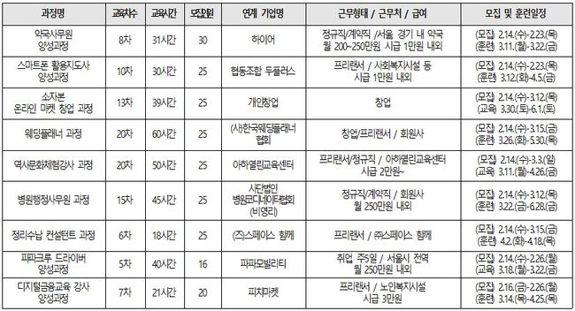 직무훈련 후에는 취업 컨설팅·일자리 연계 등 패키지형 종합지원 서비스를 제공해 참여자들의 만족도를 제고하고, 관련된 기업·직군·직무의 취업 정보 등을 제공해 실질적인 취업률도 높일 계획이다.