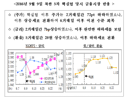 회의에서는 이번 북한의 미사일 발사가 시장이 열리지 않은 주말에 실시된 바, 국내외 금융시장에 대한 직접적인 영향은 아직 관찰되지 않고 있으며 과거 핵실험, 미사일 발사 등의 북한의 도발 당시 우리 금융시장 등에 미친 영향은 일시·제한적이었다고 판단했다.