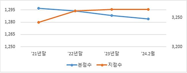 새마을금고 본점 및 지점 수 현황(`21년.12월~`24.2월)