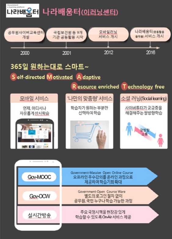 Gov-MOOC는 물리적·시간적으로 집합강의 참여가 어려운 점을 감안해 도입했다.