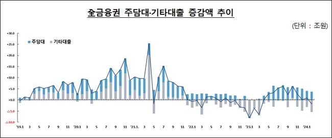 기타대출은 명절 상여금 유입 등에 따라 신용대출을 중심으로 감소폭이 확대(△1.5조원→△2.7조원)됐다.