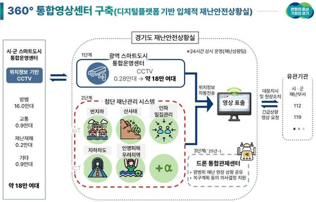 경기도는 재난관리기금 17억 원을 투입해 이런 내용을 담은 `360°스마트 영상센터`를 올 10월까지 구축하기로 하고 이달부터 사업을 시작한다고 18일 밝혔다.