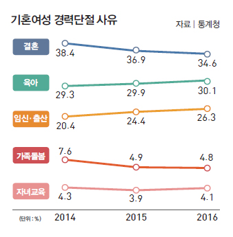 경력단절 사유 “결혼>육아>임신·출산”