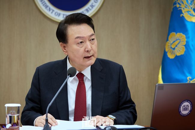 윤석열 대통령은 19일 용산 대통령실 청사에서 2024년도 제13회 국무회의를 주재하고 있다.