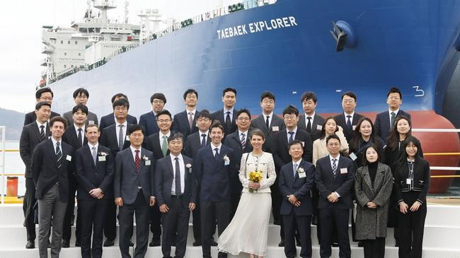 ‘태백 익스플로러호’의 명명식에는 김태우 현대글로비스 해운사업부장(전무), 안드레아 올리비(Andrea Olivi) 트라피구라 원유∙가스화물 쉬핑(사업부문장), 토마스 러시(Thomas Rush) 트라피구라 LPG∙암모니아 쉬핑(사업부실장)을 비롯해 심학무 HD현대삼호의 고객지원 부문장(전무) 등 70여명이 참석했다.