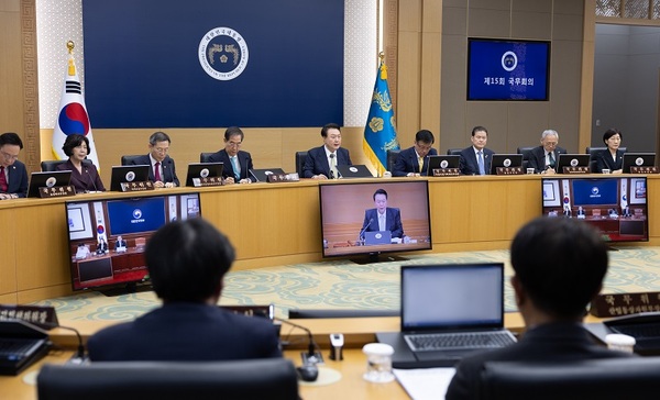 ▲ 윤석열 대통령이 2일 정부세종청사에서 2024년도 제15회 국무회의를 주재하고 있다. (대통령실 제공)윤 대통령은 무역수지 10개월 연속 흑자, 일평균 수출 증가, 반도체 수출 실적 등 최근 호전되고 있는 경제 지표를 언급하며 “우리 경기가 확실히 살아나고 있고 앞으로 더 나아질 것이라는 희망의 시그널”이라 평가하면서도, “그러나 국민이 체감하는 경기에는 온도 차가 있다”고 지적했다.