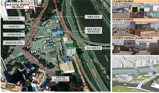 동대문구 휘경유수지 일대 수변문화거점 조성. 유수지 복합개발(문화 · 체육 · 공원 등) 및 배봉산과 중랑천 연계한 수변감성공간 조성