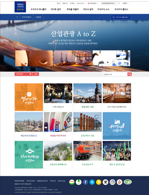 문체부는 2016년부터 지자체 및 업종 단체 등의 협조를 받아 전국의 산업관광지를 전수 조사했다. 이들 중 색다른 볼거리·체험거리를 가지고 있거나 대한민국의 과거와 현재, 미래 산업을 상징하고 대표성이 높은 산업관광지를 중심으로 근대산업유산, 문화콘텐츠산업 등 9개 분야 총 458곳의 관광정보를 한국관광공사 누리집 ‘대한민국 구석구석’(http://korean.visitkorea.or.kr/)에 공개했다.(구석구석플러스→산업관광 참조)