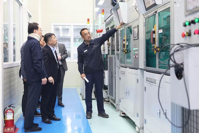 강경성 산업통상자원부 1차관은 2024. 4. 16(화) 10:00 충청남도 서산시에 위치한 미래차 핵심 부품인`자동차 배터리 · 모터 케이스`수출기업인 코넥을 방문하여, 관계자로부터 회사 운영현황 및 애로사항을 청취한 후 미래차부품 수출확대와 지원방안 등을 논의하고 모터 · 감속기 케이스 생산공정을 둘러보고 현장 근무자들 격려했다.