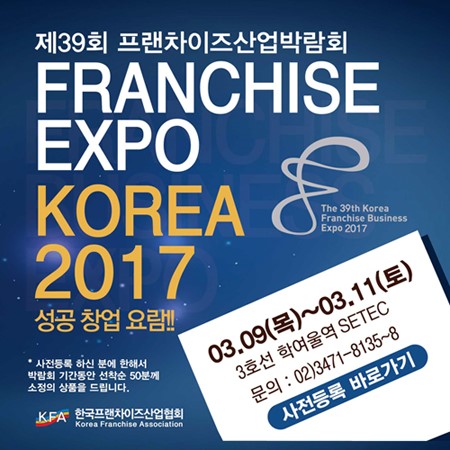 [일간한경연합 신상미 기자]공정거래위원회는 오는 9일부터 11일까지 서울 무역전시컨벤션센터에서 열리는 2017년 상반기 프랜차이즈 산업 박람회에 참가한다고 8일 밝혔다.