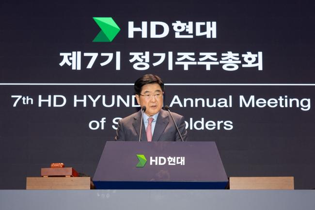HD현대 권오갑 회장이 지난 3월 29일 HD현대 글로벌R&D센터(GRC)에서 열린 제7기 정기 주주총회에서 인사말을 하고 있다