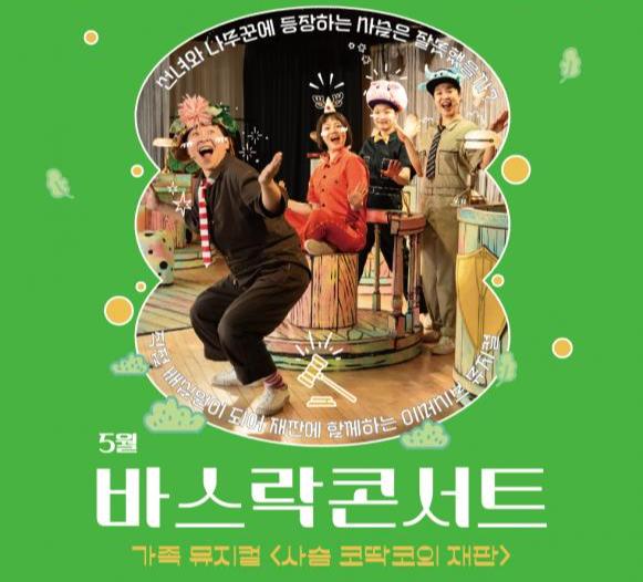 5월 9일(목) 오후 3시 서울시청 시민청 지하 2층 바스락홀에서 가족 뮤지컬 ‘사슴 코딱코의 재판’을 진행한다. ‘사슴 코딱코의 재판’은 서울시청 시민청의 5월 ‘바스락콘서트’ 프로그램으로, 온 가족이 함께 즐길 수 있는 무료 공연이다.