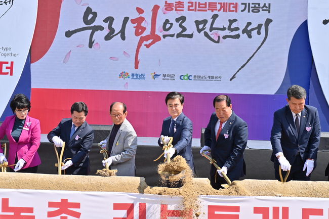 도는 16일 부여군 은산면 은산리 143-8번지 일원에서 김태흠 지사, 조길연 도의장, 박수현 국회의원 당선자, 박정현 부여군수를 비롯한 도·군의원, 주민 등 250여 명이 참석한 가운데 ‘충남형 농촌리브투게더’ 첫 사업 기공식을 개최했다.