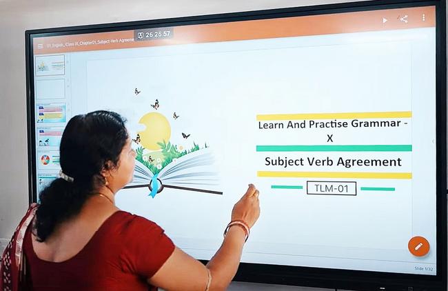 인도 오디샤주 소재 럭세와르(Laksheswar) 공립 고등학교에서 `LG 전자칠판`을 활용해 수업을 진행하고 있는 모습.