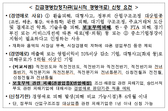 우선, 매출감소 등 피해가 구체화된 기업에는 ‘긴급경영안정자금’을 지원한다.