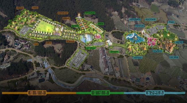 여기에 시는 감성존의 북측으로 자연을 만끽하면서 다양한 체험을 즐길 수 있는 놀이공간인 놀고랜드존도 만들기로 했다. 놀고랜드존에는 아이들이 다양한 액티비티를 체험할 수 있는 실내·야외놀이터와 함께 미로 정원과 목공예조형물, 미디어파사드 광장, 요정마을, 풍차 등이 조성돼 동화 속에 들어온 듯한 추억을 쌓을 수 있는 공간으로 꾸며진다.