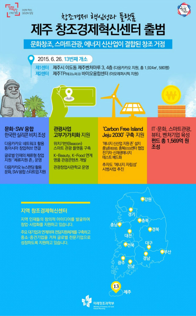 [일간환경연합 장민주 견습기자]휴양, 창업, 문화가 공존하는 한국의 ‘실리콘비치‘를 조성하는 제주 창조경제혁신센터가 출범했습니다. 문화창조, 스마트관광, 에너지 신산업이 결합된 창조 거점으로 거듭나는 제주 창조경제혁신센터를 알아봅니다!