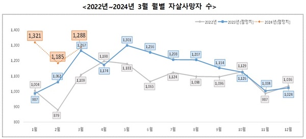 정부는 지난해와 올해 1~3월 자살사망자 증가추세가 심각한 상황임을 인식하고 신속히 그간 정책을 점검·정책을 보완했다.