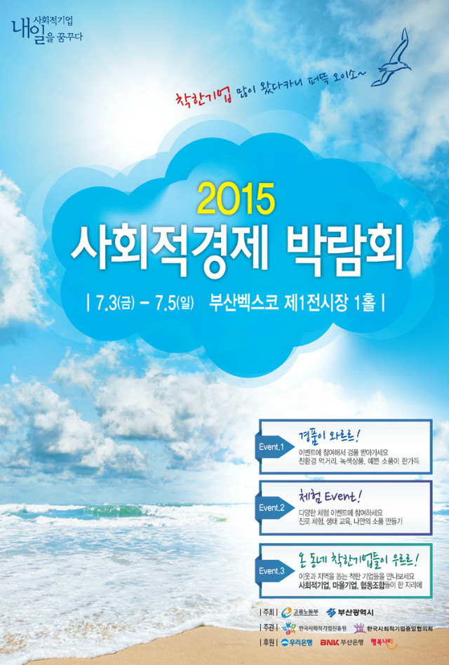 [일간환경연합 장영기 기자]고용노동부는 7월 1일 「사회적기업의 날」을 맞아 부산 벡스코에서 「2015 사회적기업 주간행사 및 사회적경제 박람회」를 개최한다.