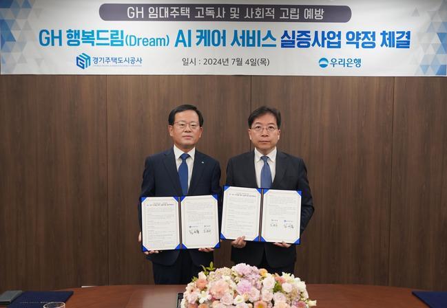 [일간환경연합 신상미 기자] 경기주택도시공사(GH)는 사회적 고립 가구의 고독사 예방을 위해 우리은행과 GH 임대주택 AI 스피커 디지털케어 환경 구축 업무 약정을 체결했다고 4일 밝혔다.