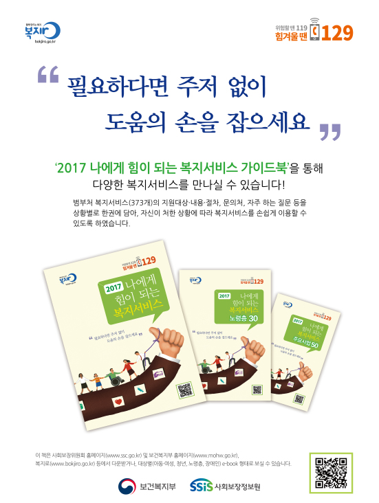 [일간환경연합 장민주 기자]보건복지부는 정부가 시행하고 있는 각종 복지서비스를 한 권에 담은 ‘2017 나에게 힘이 되는 복지서비스’ 가이드북을 발간했다고 24일 밝혔다.