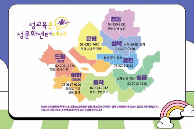청소년성문화센터는 ‘아동·청소년의 성보호에 관한 법률’ 제47조에 따라 설치·운영 중인 아동·청소년 대상 성교육 전문기관이다. 서울 소재 시립시설 7곳(광진, 동작, 드림(양천), 성북, 아하(영등포), 은평, 창동)과 구립시설(송파) 1곳 총 8개소가 운영 중이다.