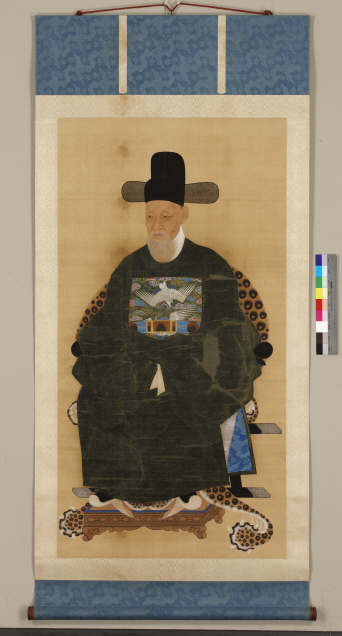 쌍학흉배(雙鶴胸背)에 정1품의 품계를 지닌 관료만이 맬 수 있는 서대(犀帶)를 착용하였다. 얼굴 묘사는 선으로 이목구비의 윤곽을 그린 뒤, 선묘에 붙여 미세한 색감을 가미하는 선염법(渲染法)으로 채색하였다.