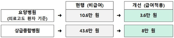 요양병원의 임종실 이용 비용은 기존 10만 6000원에서 3만 6000원 수준으로, 상급종합병원은 43만 6000원에서 8만 원으로 줄어든다.