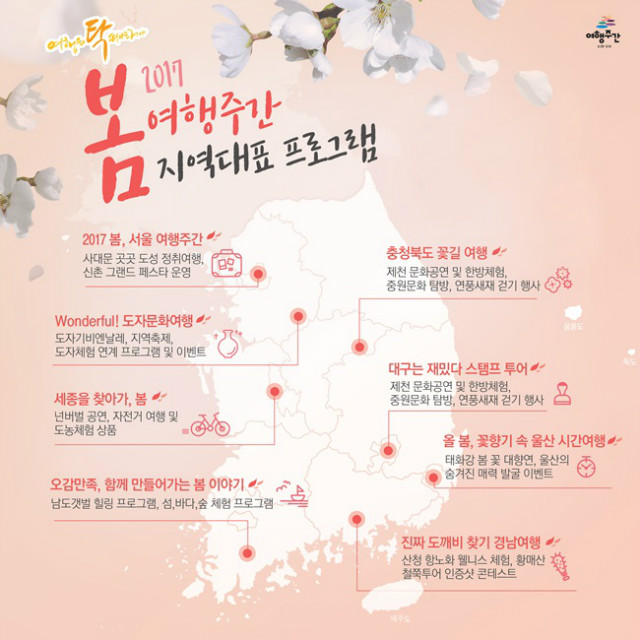 [일간한경연합 장민주 기자]2017년 봄 여행주간에 각 지역 대표 프로그램들을 인포그래픽으로 준비했습니다.