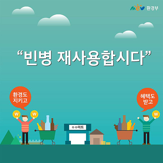 빈병 재사용은 자원절약, 환경 사랑의 첫걸음이다.