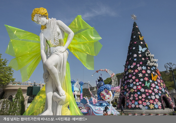 | -2017.04.27 ~ 2017.06.11 -경기도 용인시 처인구 포곡읍 에버랜드로 199 에버랜드는 5월 가정의 달을 맞아 팝아트를 콘셉트로 한 팝아트 가든을 장미원 지역에 조성하여 온 가족이 함께 즐길 수 있도록 했다. 팝아트는 대중문화를 예술로 표현한 예술장르로 1만 개의 통조림 캔을 화분으로 활용해 유채, 루피너스, 델피늄 등 다양한 봄꽃들을 전시한 ‘캔 화분 가든’, 꽃과 나비가 화려한 색감으로 표현된 26m 높이의 초대형 ‘타워트리’ 등이 눈길을 끈다. 이외에도 츄파춥스, 벅스, 호가든 등 다양한 브랜드와의 콜라보레이션존이 마련돼 풍성한 즐길 거리를 제공하고 있다. |