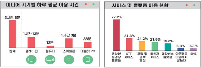 ‘2023 어린이 미디어 이용 조사’에 따르면 우리나라 어린이(만 3세 이상 만 9세 이하)의 93.7%가 미디어를 이용하고 있고, 하루 평균 이용 시간은 약 3시간 정도로 세계보건기구가 권고한 시간보다 3배 이상 높다.