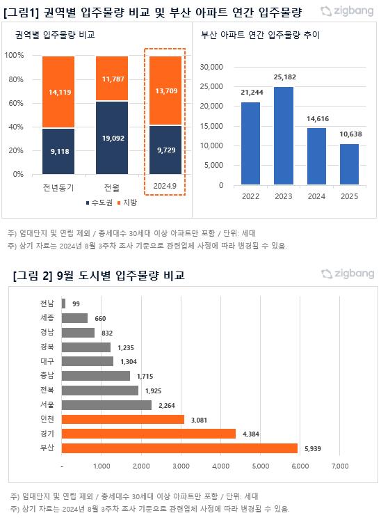 한편 9월 입주물량이 월간으로는 많지만 부산은 2022~2023년 입주물량이 집중된 이후 올해부터 입주물량이 줄기 시작해 2025년부터 연간 1만여 세대 정도만이 입주를 앞두고 있다.