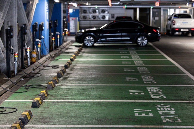 ▲ 서울의 한 쇼핑몰 내 전기자동차 충전 구역의 모습.(ⓒ뉴스1,)국토부는 최근 전기자동차 화재 사고와 관련해 배터리 정보에 대한 관심이 높아짐에 따라 전기차 배터리 정보공개를 의무화해 전기차 안전과 관련한 국민의 알 권리를 보장해 나갈 계획이다.