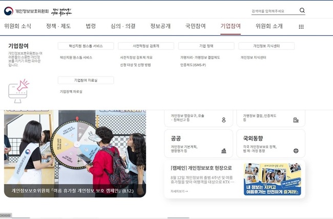 ▲ 개인정보 지식센터 누리집 화면(이미지=개인정보보호위원회)개인정보 지식센터는 개인정보보호위원회 누리집(pipc.go.kr) ‘기업참여’ 메뉴 안에 새롭게 개설한 소통공간이다. 개인정보 관련 모니터링과 사전검토가 필요한 기업에는 가이드가 되고 개인정보에 관심이 많은 사람에게는 현안과 이슈를 두루 살펴보는 창구가 되도록 유용한 정보를 담을 예정이다.