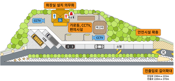 • 진·출입로 길이 휴게소 수준으로 확대…화장실 설치 의무화