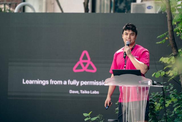 `이드콘 코리아 2023`에서 타이코 연사가 레이어2에 대해 발표하고 있다