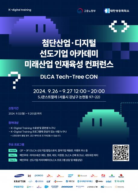 [일간환경연합 신상미 기자] 대한상공회의소는 9월 26일(목)부터 27일(금) 양일간 12:00~20:00까지 SJ쿤스트할레(서울 강남구 언주로148길 5)에서 ‘2024 DLCA Tech-Tree CON’을 개최한다고 밝혔다.