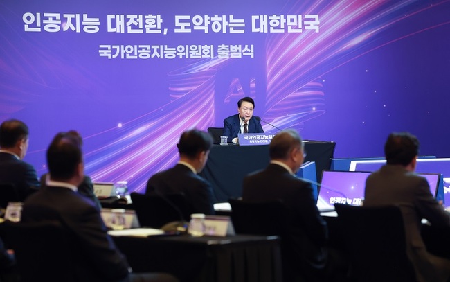 [일간환경연합 장영기 기자]윤석열 대통령은 26일 이세돌 9단과 인공지능 알파고가 8년 전 세기의 바둑 대국을 펼쳤던 서울 포시즌스 호텔에서 ‘국가인공지능위원회 출범식 및 제1차 회의’를 주재했다.