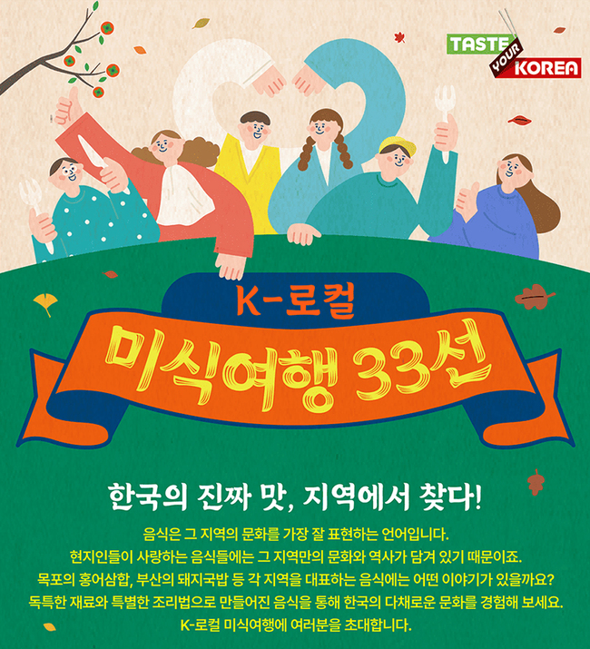 [일간환경연합 한선미 기자]다음은 한국의 진짜맛은 지역에서 찾는다. K-로컬 미식여행 33선이다 한눈에 확인하세요!