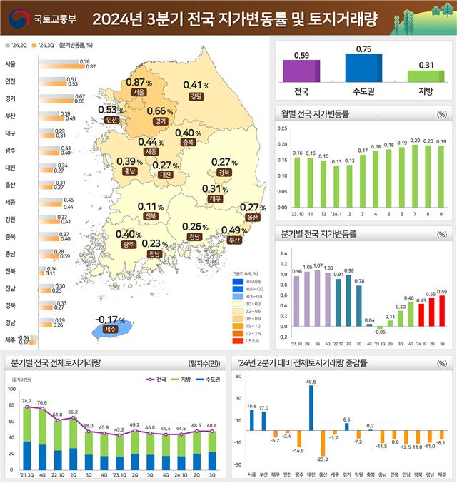 2024년 3분기 전국 지가변동률 및 토지거래량