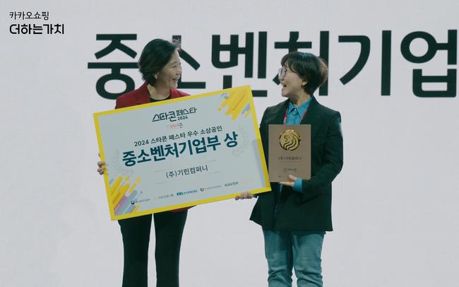 카카오는 10월 28일 광화문 광장에서 중소벤처기업부, 소상공인시장진흥공단과 함께 2024 강한 소상공인 성장지원사업 성과 공유회를 열었다. 사진은 중소벤처기업부 상을 수상한 ㈜기린컴퍼니.