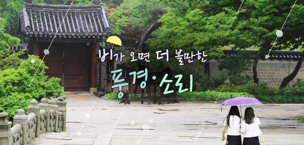 비는 산수풍경을 그리는 붓이다. 장대비로 계곡물을 그리고, 궁궐 낙숫물은 단단한 돌에 홈을 파낸다. 빗물은 초목의 갈증을 해소하고, 차갑게 열린 하늘 아래 포근한 흙냄새를 풍긴다. 도심에 내리는 비는 빼곡한 공간에 여백을 만들어 청량한 빗소리로 그 풍경을 채운다. 34만 490㎡(10만 3000여 평)에 달하는 창덕궁 후원의 자연은 그렇게 깨어난다. 비 오는 날 창덕궁을 걷고 싶은 것도 그 때문이다. 차분하게 깊어진 궁궐의 색다른 모습을 만날 수 있다.