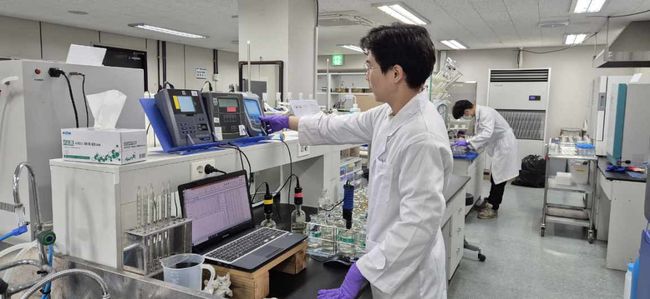 용인특례시 하수도사업소가 자체 운영 중인 실험실에서 시 관계자가 수질 분석을 하고 있다