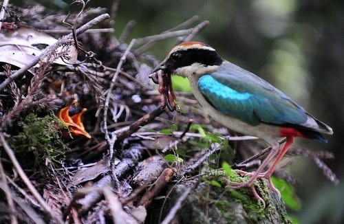 팔색조가 새끼를 키우는 과정 중에 새끼에게 지렁이나 지렁이 형태의 곤충을 먹이는 것은 일반적으로 알려져 있다.