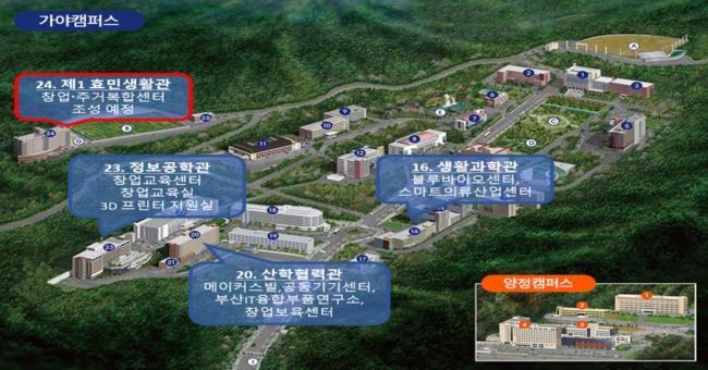 `부산 창업가꿈` 3호점인 동의대점은 대학교 내 기숙사(효민생활관)를 리모델링해 창업시설로 탈바꿈한다. 사무 및 주거 공간 25실, 공용 멀티룸, 라운지 등이 조성돼 지역 내 창업을 원하는 청년들이 창업 활동을 안정적으로 펼칠 수 있는 창업형 보금자리로 다시 태어났다.