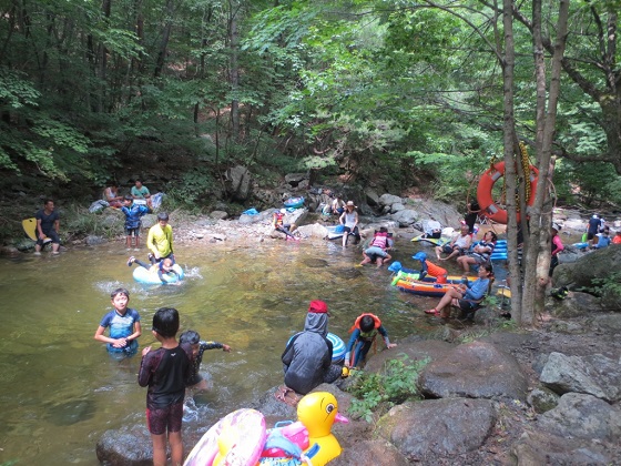 용대자연휴양림 내에 위치한 야영장에서 이용객들이 시원한 계곡물에서 즐겁게 더위를 날려버리고 있다.(사진=공감포토)