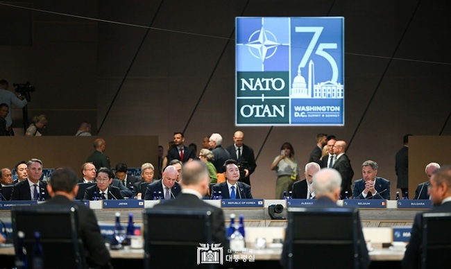 ▲ 지난 7월 11일 윤석열 대통령은 NATO 동맹국·파트너국 정상회의에 참석했다.(사진=대통령실 제공) 이와 함께 글로벌 안보 현안 관련 역할을 증대했다.