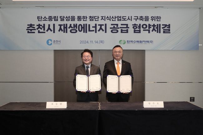 육동한 춘천시장은 “첨단산업 유치 및 지속가능한 도시 조성을 위해 재생에너지 기반 구축은 필수적”이라며 “춘천시와 한수원이 힘을 합쳐 친환경 에너지를 통한 첨단지식산업도시 조성이라는 최고의 성과를 낼 수 있도록 최선을 다해 노력하겠다”라고 말했다.