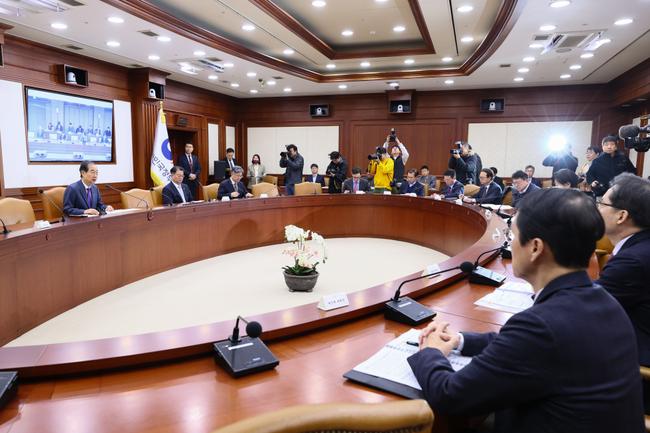 한덕수 국무총리가 5일 세종대로 정부서울청사에서 열린 국정현안관계장관회의를 주재, 모두발언을 하고 있다.